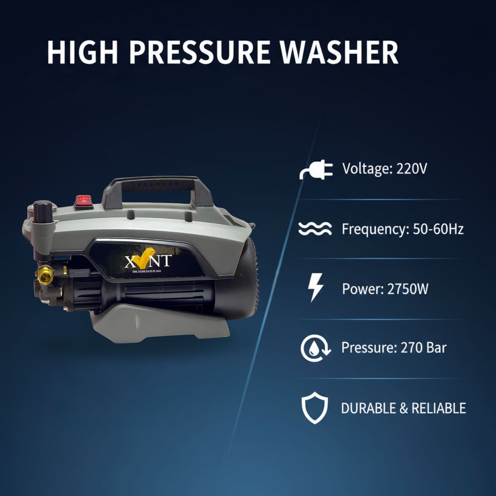 Powerful 2750W motor delivers exceptional cleaning performance with a pressure output of 270 BAR for tough dirt and grime removal.